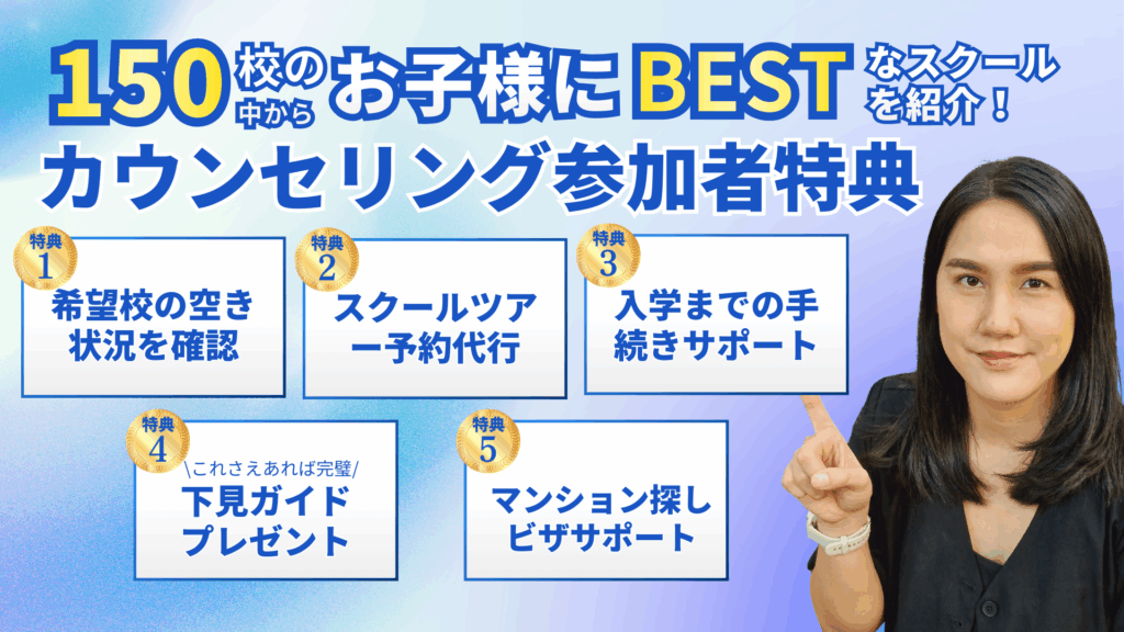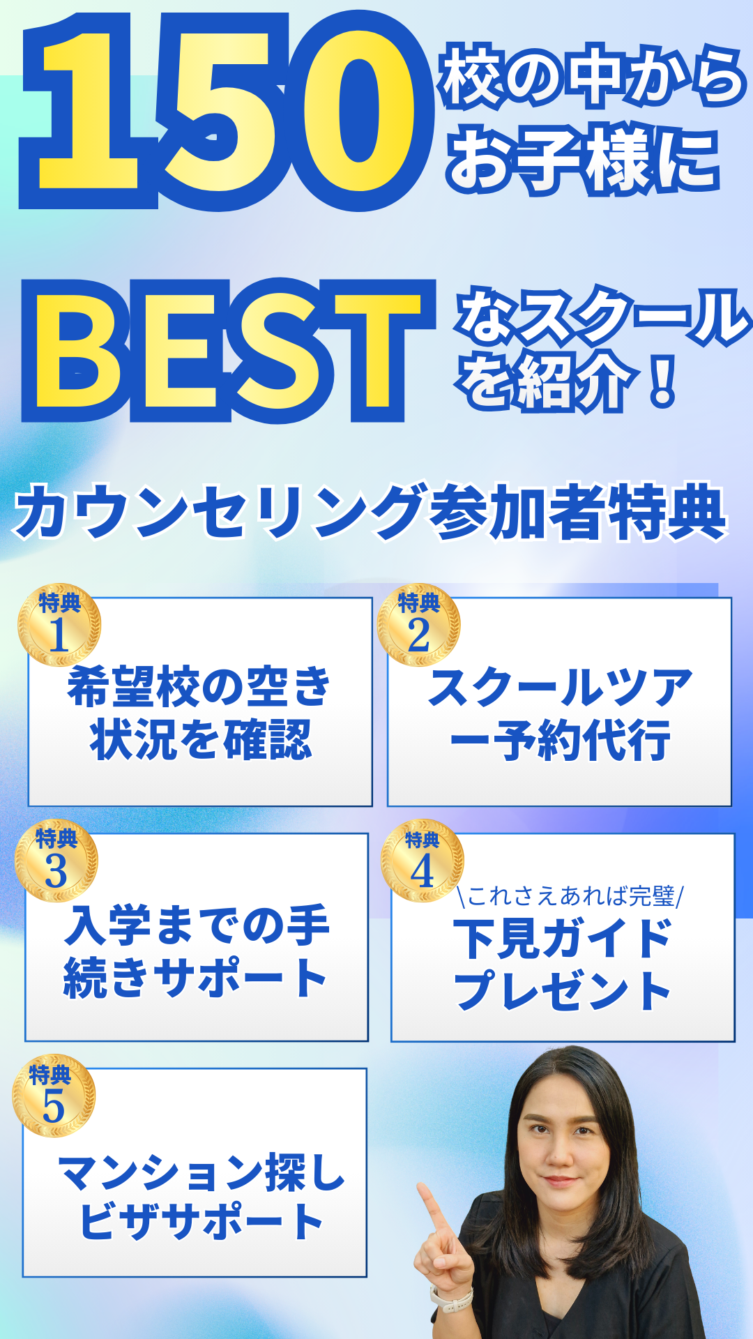 - 学費・校風・日本人比率・ロケーション・英語サポート全てのご希望に合わせてご提案