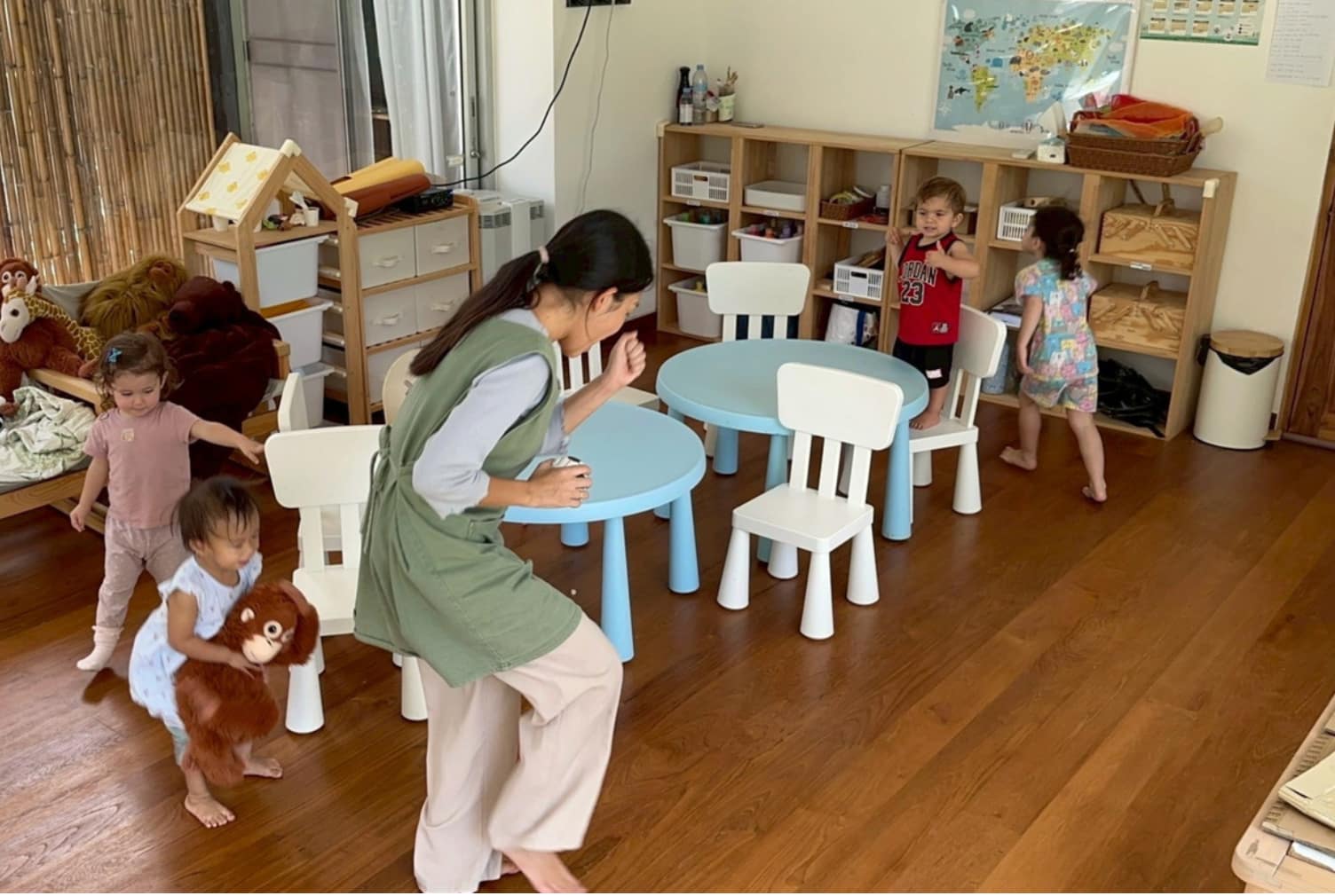 ・保育言語:英語中心。