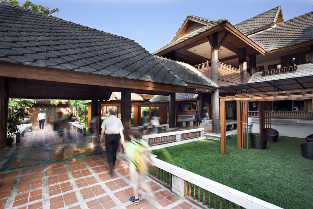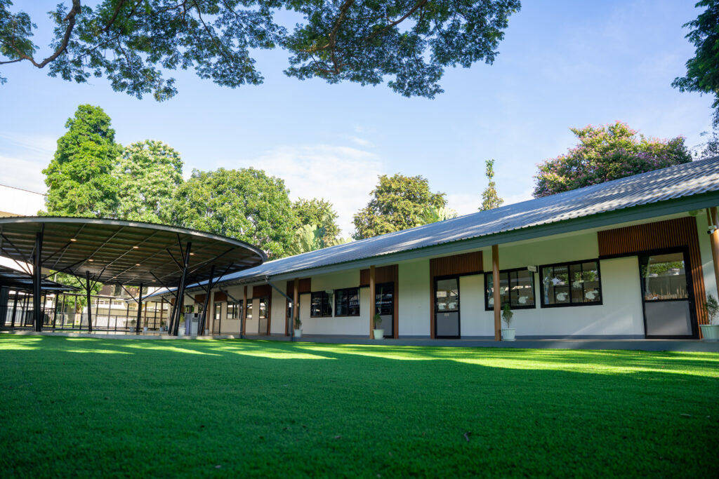 タイ北部・チェンマイの広大なキャンパス(約40ライ)。フルサイズ体育館、25mプール、理科ラボ、屋外サッカー場や、屋根付きバスケットコードなどが大充実。