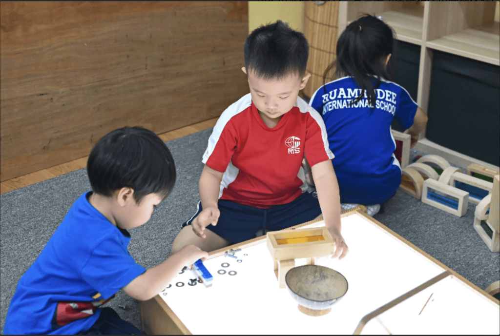 小学校(Kindergarten〜Grade 5)は、あたたかく生徒中心の学びと社会情緒(SEL)の育成に力を入れているセクションです。リーディング・ライティング・算数・理科・社会に加え、アート・音楽・シアター&ダンス・体育・第2外国語・バリュー教育など、専門教員による幅広い科目を学びます。全児童がタイ語とタイ文化についても学び、多文化理解と「世界市民」としての視点を身につけます。:contentReference[oaicite:4]{index=4}